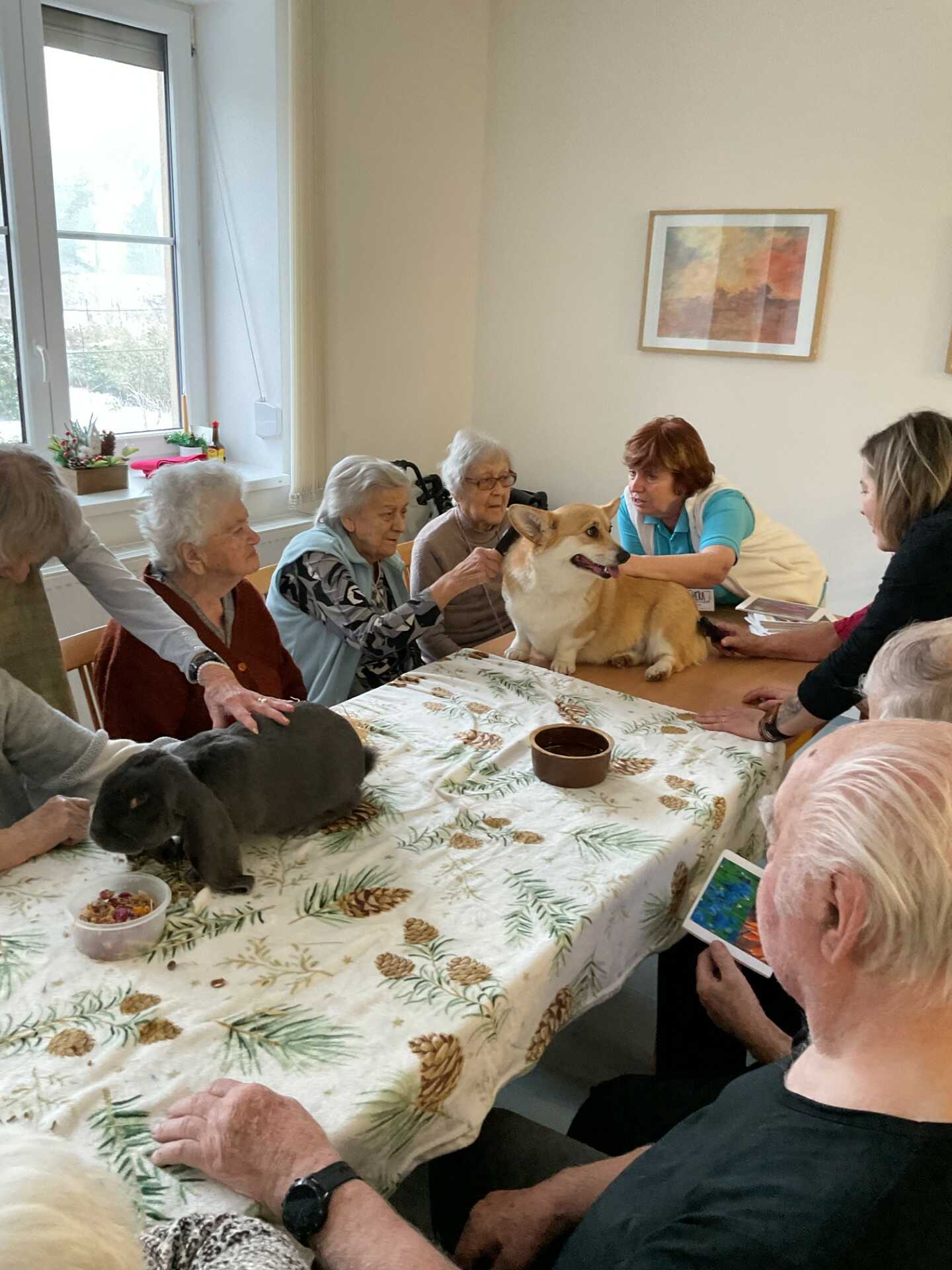 Děkujeme canisterapeutům Kláře Kučerové a Jakubu Houdovi za úžasný čas strávený se dvěma pejsky a králíčkem.