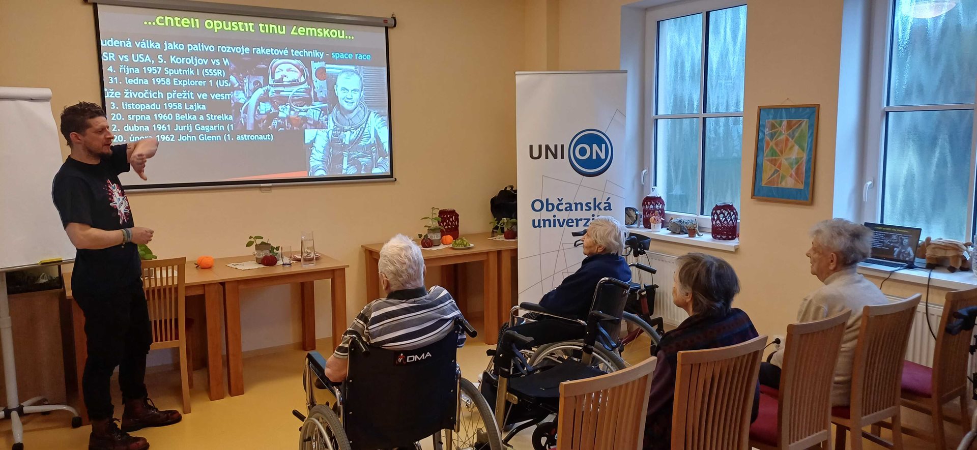 Děkujeme za nesmírně zajímavou přednášku panu lektorovi Janu Tomáštíkovi s názvem Dobývání sluneční soustavy. Tato akce se konala pod záštitou projektu Union - občanská univerzita a my jsme rádi, že nás organizátoři z Univerzity Palackého v Olomouci oslovili a my se mohli dovědět spoustu poutavých informací nejen o historii dobývání vesmíru.