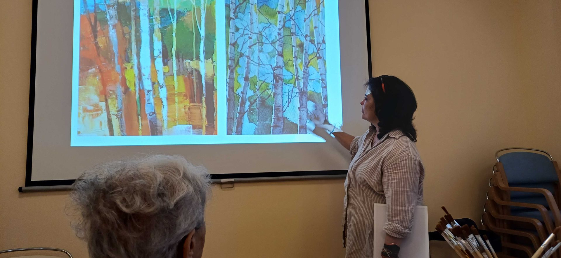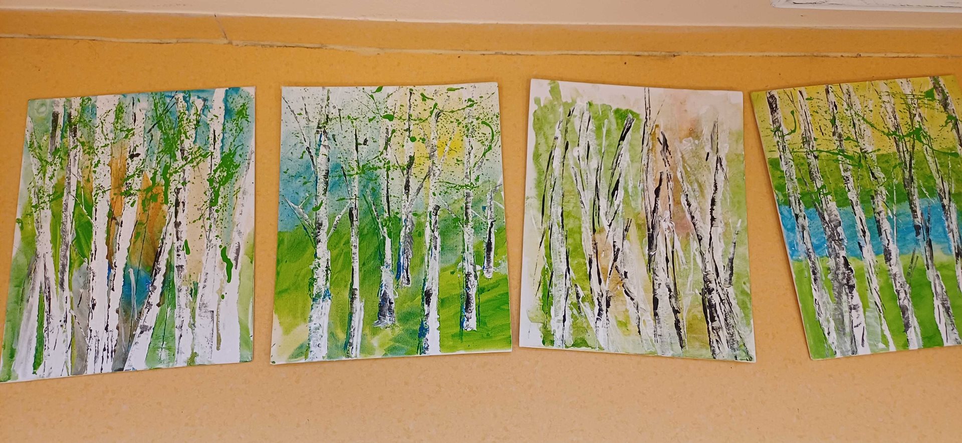 Děkujeme paní lektorce Petře Ševcůjové za skvělý a obohacující výtvarný kurz. Naučili jsme se spoustu zajímavých technik, ze kterých vznikla krásná výtvarná díla. Posuďte sami, jak se nám obrazy s tématem březového lesa povedly.